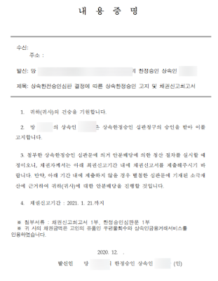 채권자 내용 증명 통지