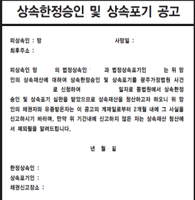 한정 승인 판결문이 나오면, 이를 신문공고와 채권자 통지를 한다.