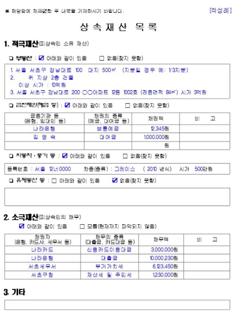 망인의 남겨진 재산을 확인해야 하는데 확인이 끝이 아니고, 법원에 제출할 증명서가 필요하다.