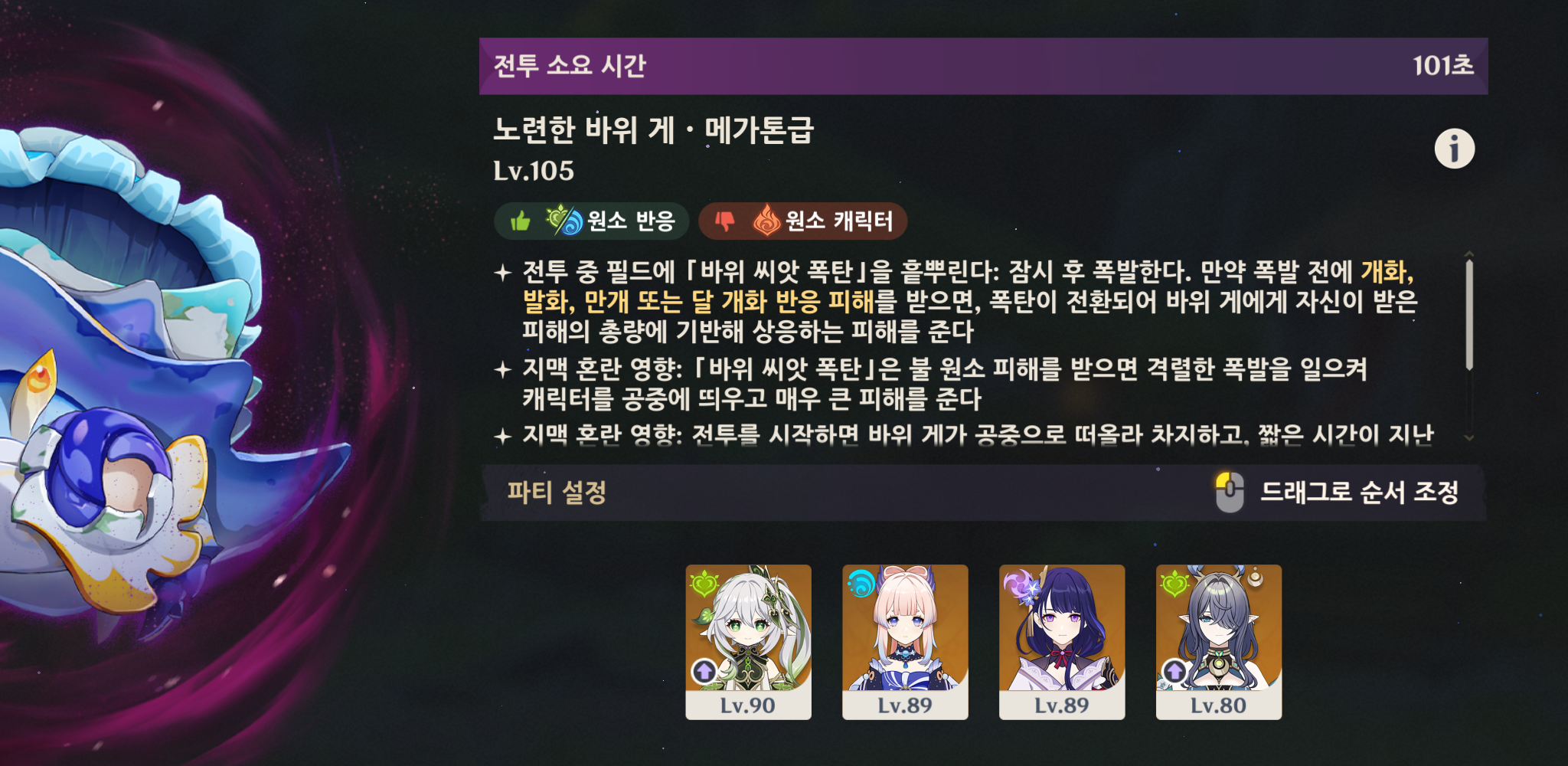 개화, 달개화를 적극적으로 이용해야 한다. 바위 게가 발사하는 꽃?을 열심해 개화 반응으로 피해를 주면 꽃이 피해를 주는 방식,