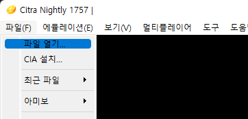 이렇게 복호화한 파일을 파일 열기를 통해서 Citra에서 실행하면 된다.
