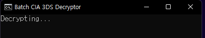 복호화 방법은 위 폴더에 복호화할 cia 파일을 넣고(여러개의 cia 파일 가능), Batch CIA 3DS Decryptor.bat 를 실행해주면 복호화가 진행되고, 파일 별로 -decrypted.cci파일이 생성된다.