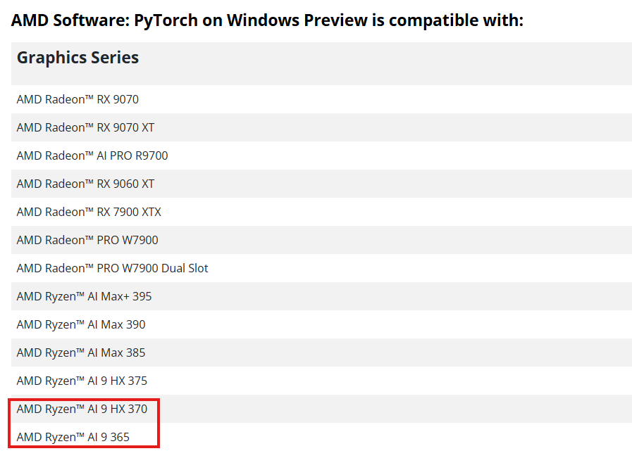 - 일반적인 Adrenalin Edition이 아닌, PyTorch 전용 프리뷰 드라이버가 필요하다.