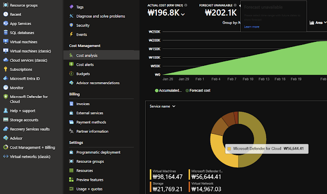 어느날 서비스 비용을 보는데, 4분의 1이 되는 비용을 Microsoft Defender for Cloud 가 사용하고 있었다.
