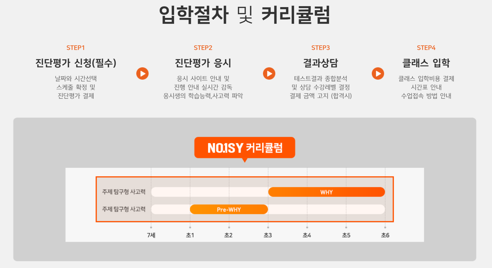 아마 입학 평가를 통해 현재 사고력을 테스트 하고 결과에 따라 레벨이 결정되지 않을까 싶다.
