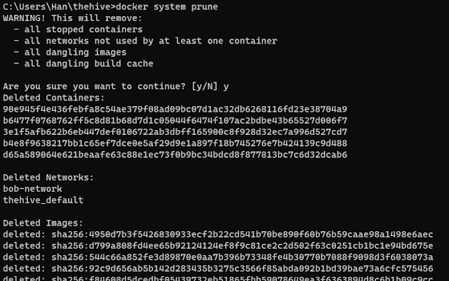 이 명령어는 기본적으로 사용되지 않는 모든 이미지를 삭제한다. system 으로 번경하면, 이미지와 컨테이너까지 모두 삭제할 수 있다.