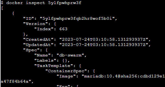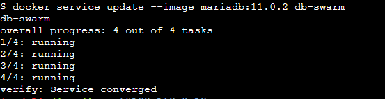 docker service create --name db-swarm --replicas 4 --env MARIADB_ROOT_PASSWORD=password mariadb:10.4