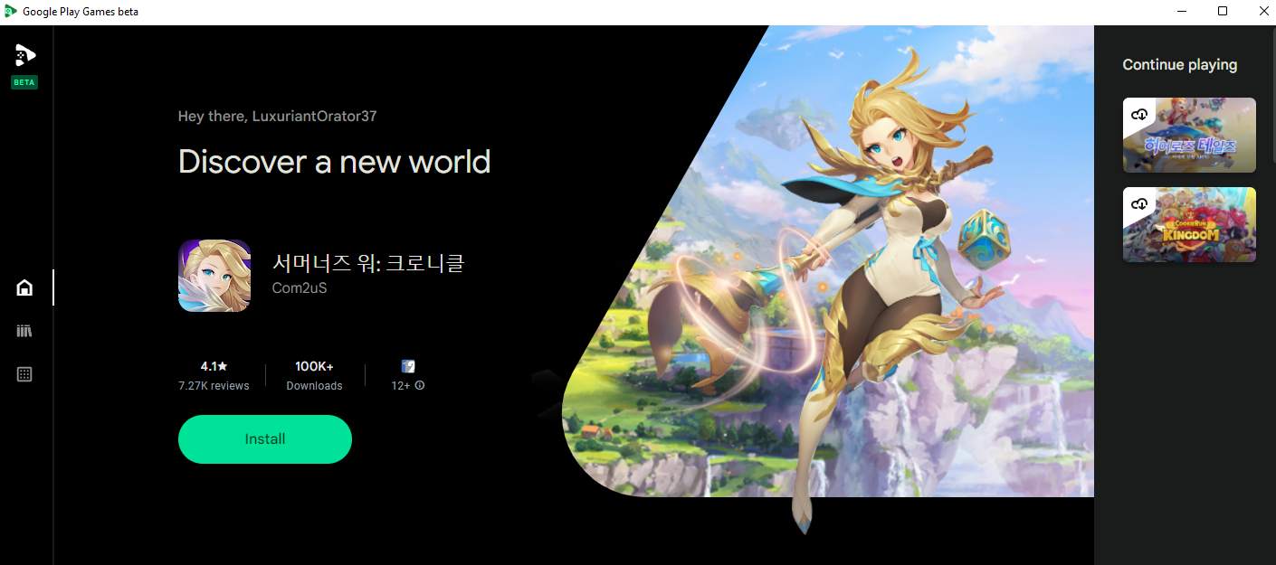 연동 이후 메인 페이지에 들어오면, 아직까지 많은 게임이 가능한것은 아니며, 원래 크로스플랫폼으로 개발된 게임 위주로 나타나는 것을 알 수 있다. 방식으로 보면, Nox와 같은 에뮬레이터 방식이 아닌 크로스 플랫폼으로 나온 앱을 사용할 수 있도록 해주는 기능 정도로 보인다...