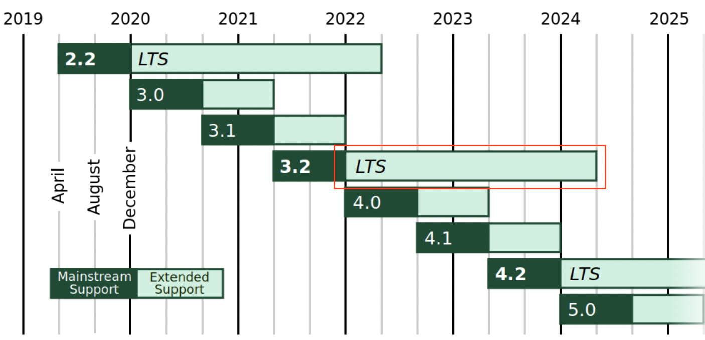 다만 기간이 2.5년으로 LTS가 조금 짧다는 점에서 이해가 필요하다.