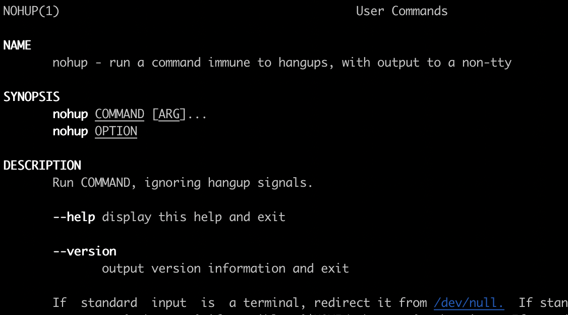 nohup은 실행을 현재 사용자 세션이 아닌 운영체제가 제공하는 백그라운드 공간에서 실행을 한다.