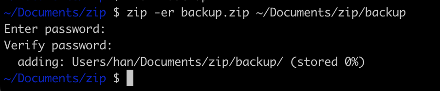 adding: Users/han/Documents/zip/xxx.xxx