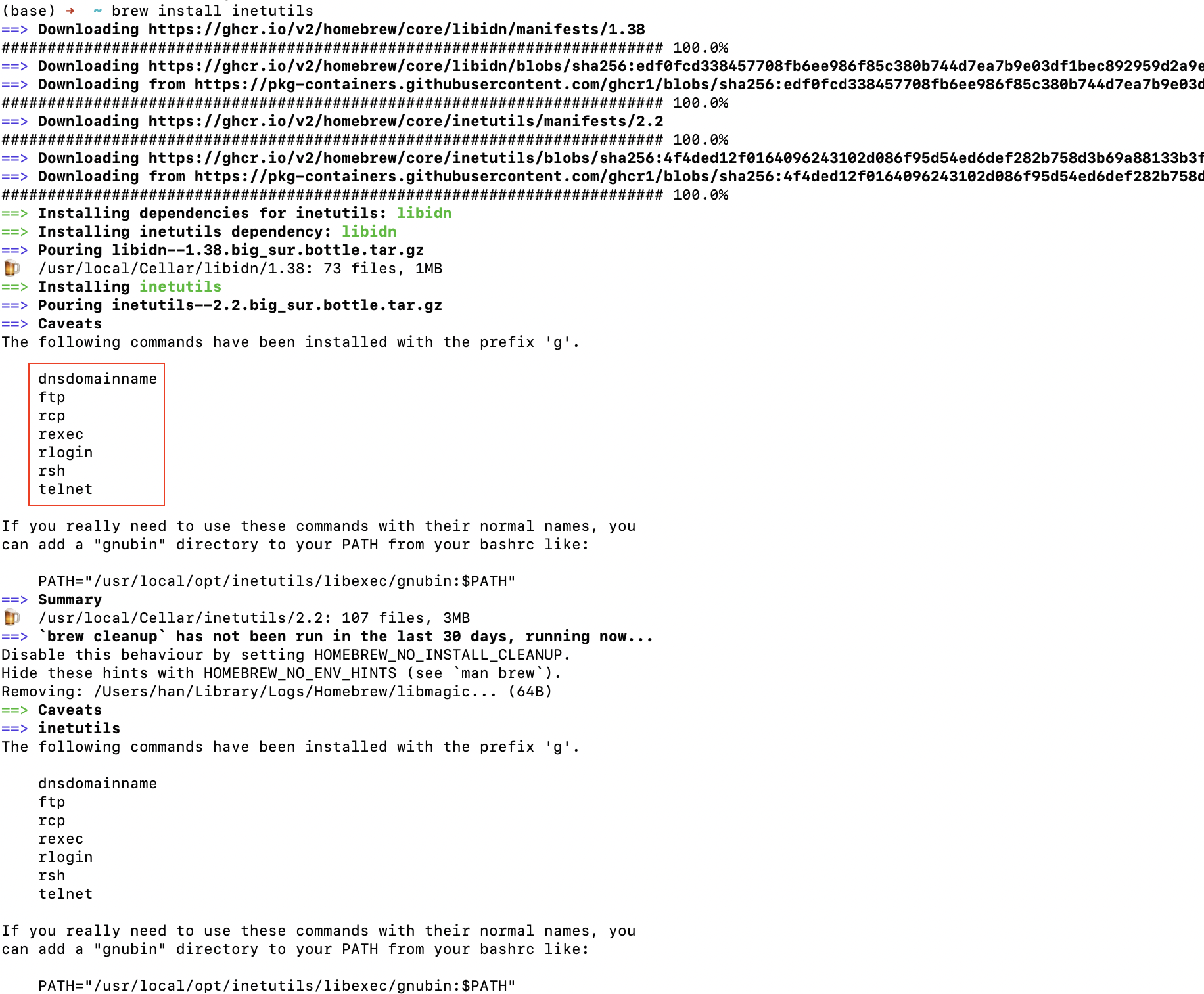 설치 이후에 dnsdomainname, ftp, rcp, rexec, rlogin, rsh, telnet등을 사용 할 수 있다.