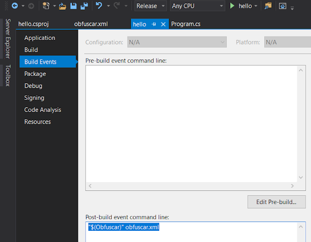 위와 같이 설치한 이후 프로그램 빌드를 진행한다. 빌드후 obfuscar.xml 파일을 빌드 디렉토리에 생성하고,