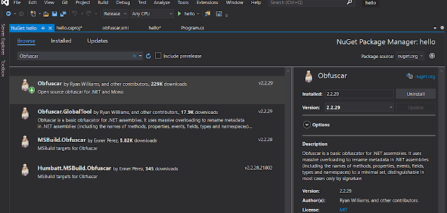난독화화 도구중 Obfuscar는 오픈소스로 활발하게 업데이트가 이루어지고 있어 버그나 개선이 잘 이루어지고 있다고 할 수 있다.