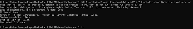 그리고 빌드를 진행하면, 빌드이후 Obfuscar가 난독화를 정상적으로 진행하는 것을 확인할 수 있다.