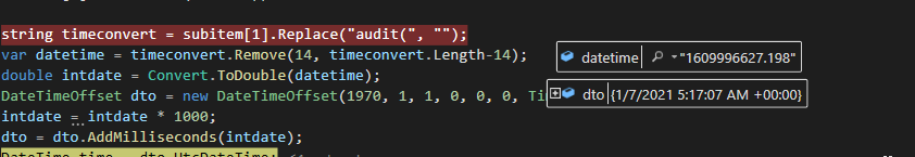 string timeconvert = subitem[1].Replace("audit(", "");