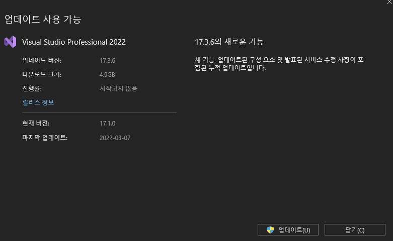 .NET MAUI 6.0을 사용하기 위해서는 먼저 업데이트를 진행해야 한다.