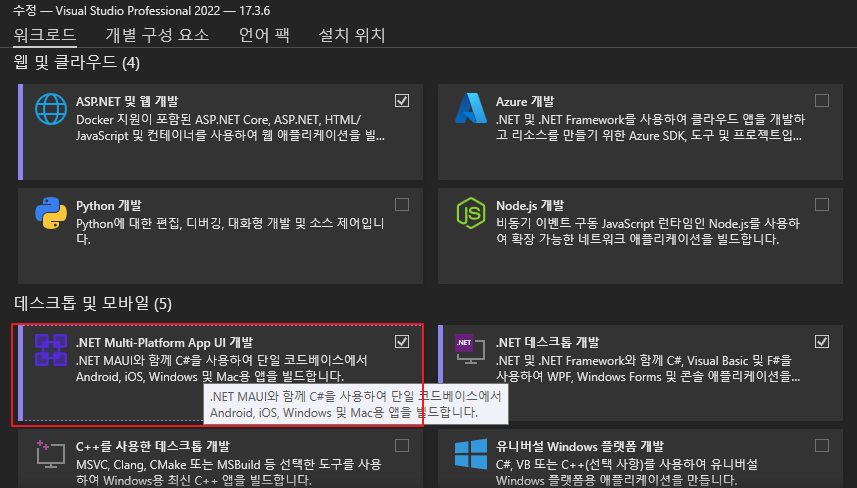 22년10월11일 업데이트인 Visual Studio 2022 version 17.3.6 버전 에 MAUI 6.0 버전이 배포되었다.
