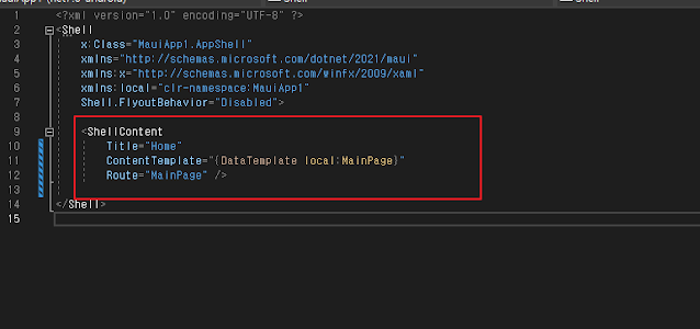 ShellContent 는 MAUI 프로젝트를 생성하면 가장 기본적으로 구성되어 있는 화면 UI이다.