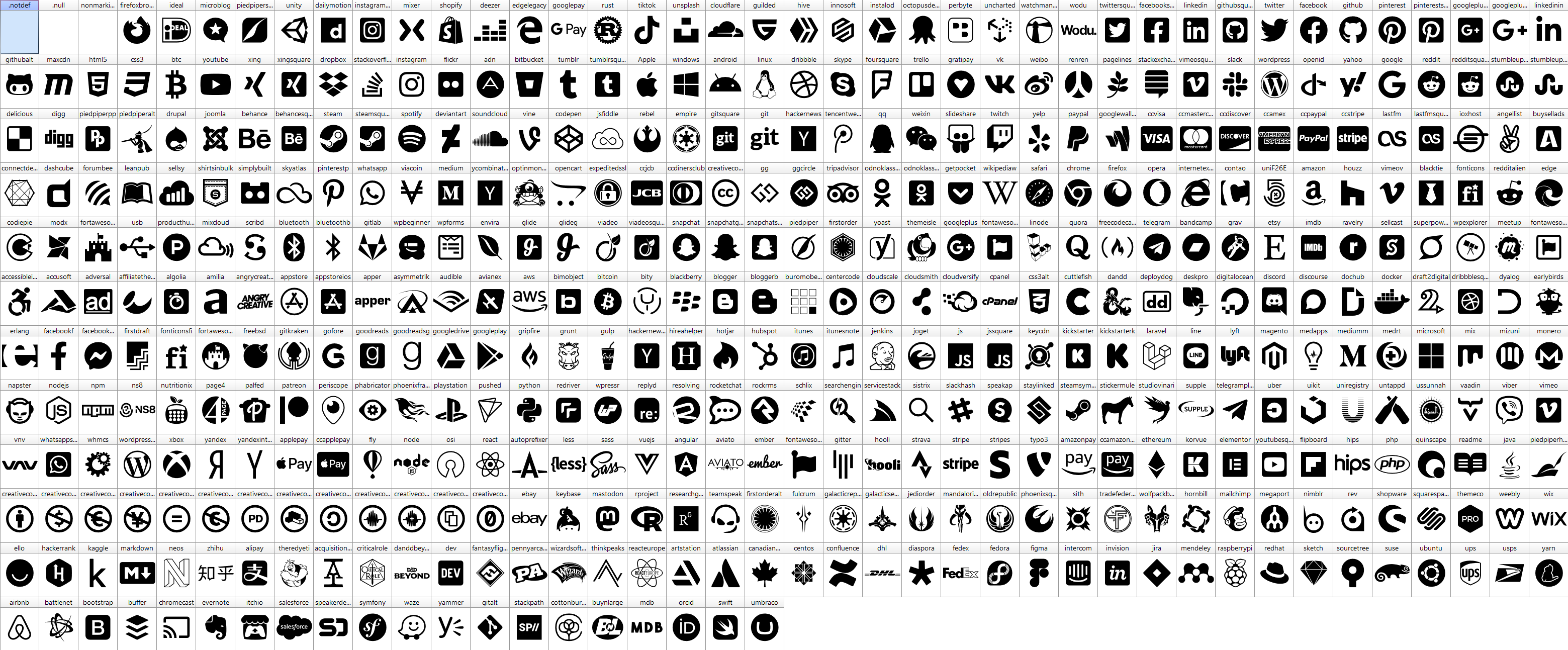 fab: 브랜드 관련 아이콘, 유명 브랜드와 소프트웨어 아이콘을 사용할 수 있다.
