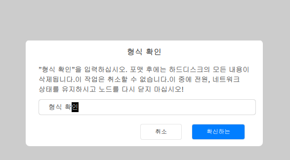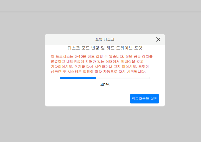 형식 확인을 한글로 작성하면, 10분 이내로 포맷이 완료된다.
