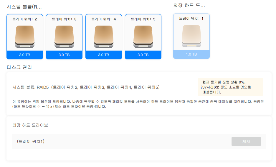 말이 길었고, 필자는 2,3,4,5 트레이를 시스템 볼륨으로 RAID5로 구성하였다.