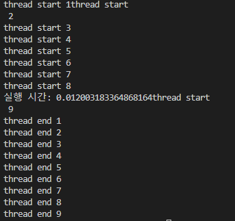 기본 실행시간은 1초가 걸리지 않고 이후 쓰레드에서 작업을 처리하면 전체가 완료되는 시간이 10초가 걸리게 된다.