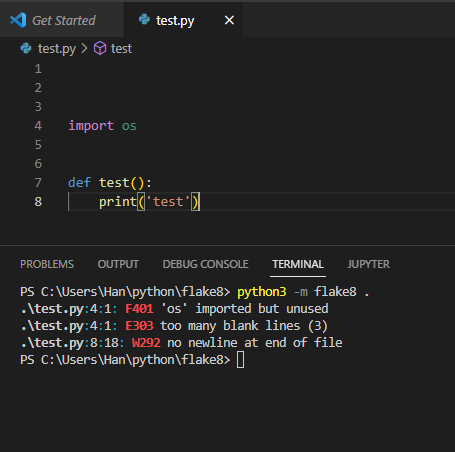 PS C:\Users\Han\python\flake8> python3 -m flake8 test1.py