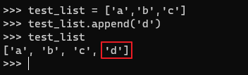 위 예제를 진행해보면, 아래 그림과 같이 기존 리스트 a b c에 d가 추가된 것을 알 수 있다.