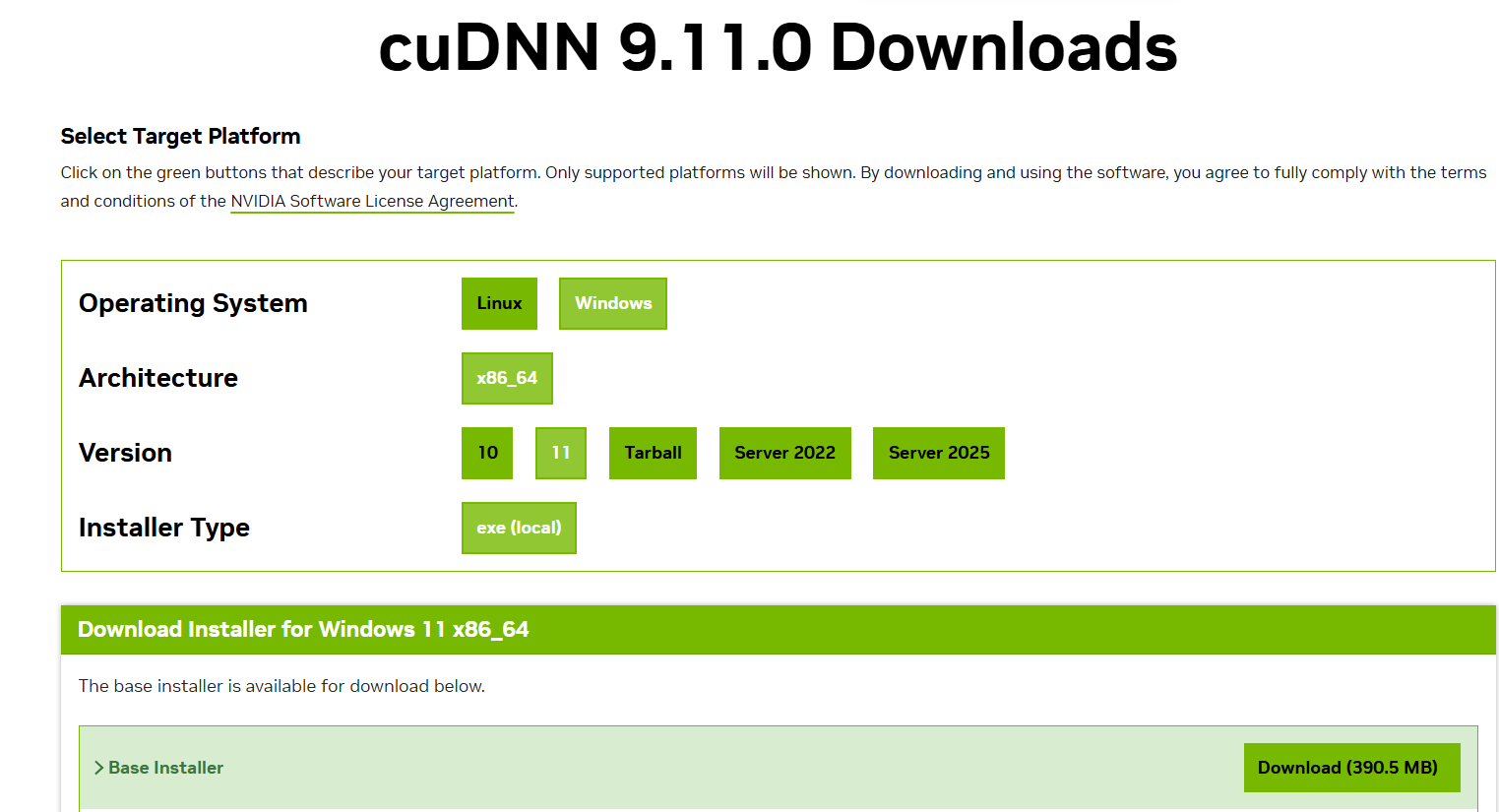 다음으로 cuDNN을 설치하도록 하자. 다운로드후 기본값으로 설치하면 끝이다.