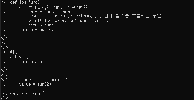 result = func(*args, **kwargs) # 실제 함수를 호출하는 구분