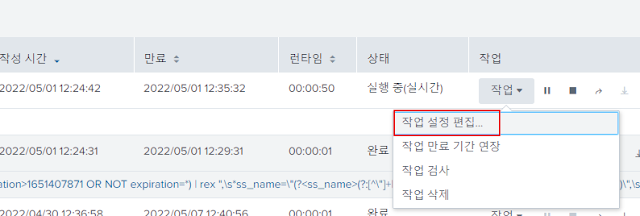 이후 공유하고자 하는 검색 결과의 작업을 누르면 작업 설정 편집을 들어갈 수 있다.