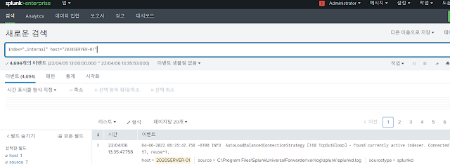 세부적인 배포 상태로그는 index="_internal" host="서버이름"으로 확인이 가능하다.