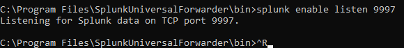 아래 명령을 이용해서 수신 포트를 활성화가 가능하다. 그리고 데이터 수신시 전달할 Splunk 서버도 함께 구성해 두어야 한다.
