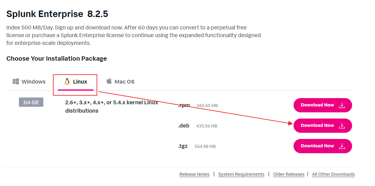 우리는 Ubuntu에 설치를 할 것으로 Splunk Enterprise를 선택하도록 하자.