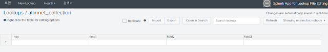 REST API를 이용해서 데이터를 넣고, 업데이트하는데에는 상관 없지만, 사용자 편의를 위해 Splunk App for Lookup File Editing을 통한 GUI를 이용할 경우 스키마를 설정해 두지 않으면 정상적으로 데이터를 확인하기가 어렵다.