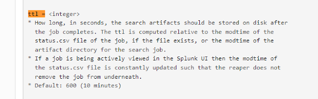 이 값은 /opt/splunk/etc/system/default/limits.conf 에서 변경이 가능하다.  아래 ttl 값을 변경하면 된다.