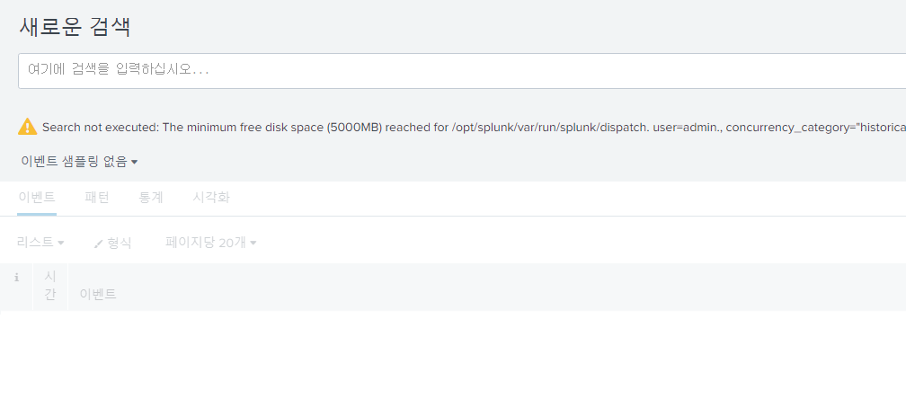 Splunk를 운영하다보면, 검색결과가 저장되어 저장 공간이 부족한 경우 이와 같은 오류가 발생할 수 있다.
