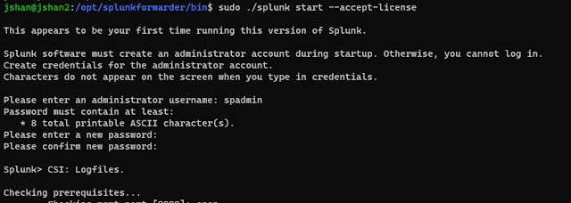 sudo ./splunk start --accept-license