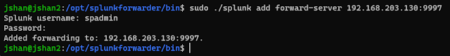 sudo ./splunk add forward-server <host>:<port>
