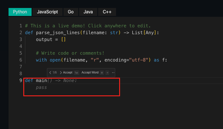 주요 언어로는 Python, JavaScript, Go, Java등을 지원하고 있고, 웹에서 바로 사용해보는 것도 가능하기 때문에, 설치에 부담을 느끼는 사용자라면 유용하다.