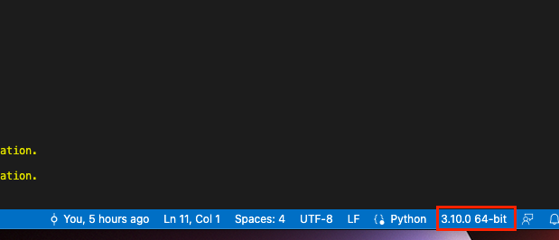 VSCode 하단에 버전 정보부분을 클릭하면 현재 선택된 인터프린터를 변경할 수 있다.
