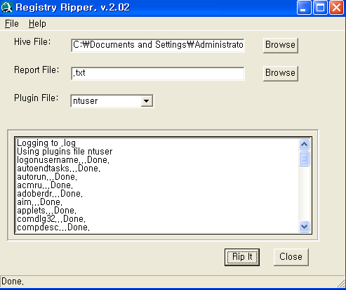 사용자와 흔적에 관련된 파일은 Ntuser.dat 파일에 저장되어 있다. 이 파일은 앞서 레지스트리 분석에서 진행하였던 RegRipper를 이용하여 분석할 수 있으므로 손쉽게 분석된 정보를 얻을 수 있다. RegRipper GUI 도구를 이용하면 Ntuser.dat 관련 데이터만 분석하여 확인할 수 있으니 분석에 어려움은 없을 거라 판단된다. 그럼 각 항목별 이용법에 대해 설명하고, 개별 사용방법에 대해 알아보도록 하자.