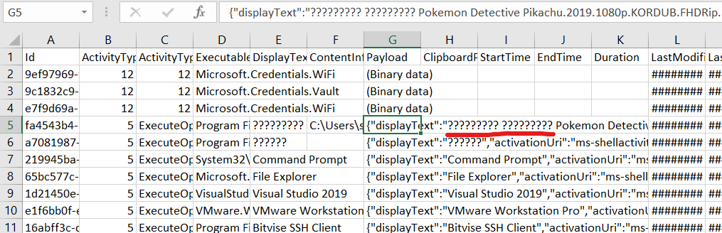 WxTCmd.exe -f ActivitiesCache.db --csv c:\temp