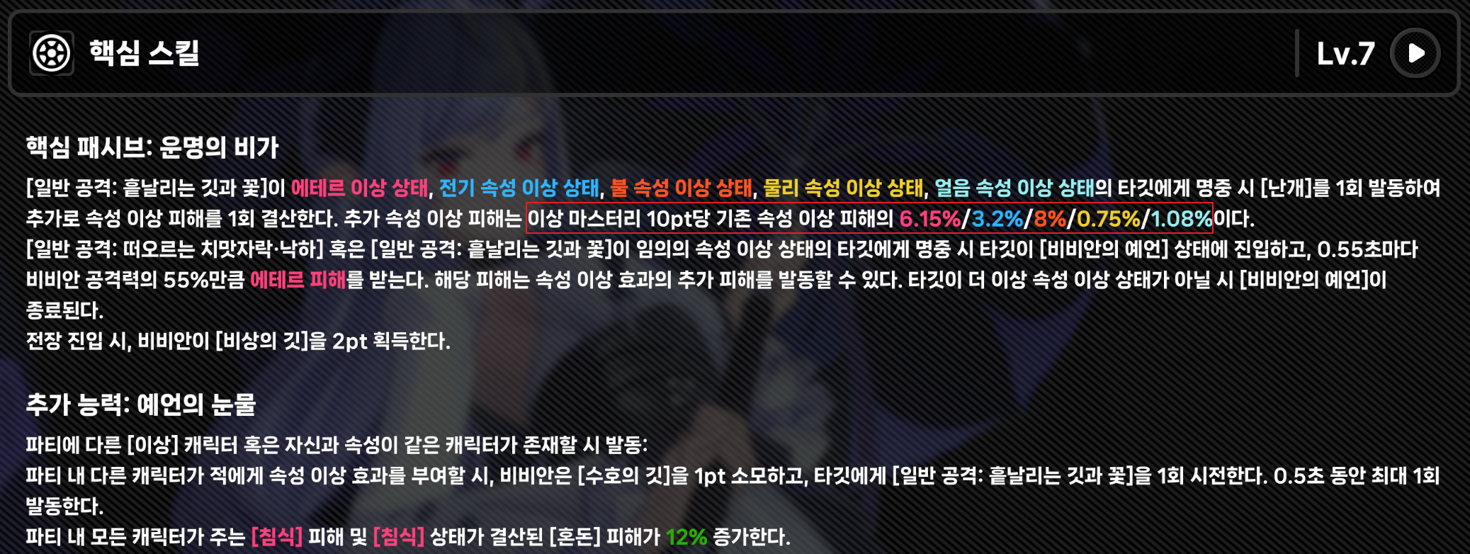 여기에 혼돈 피해량 증가도 있어서 이상 장악력도 챙김으로써 비비안 자체의 피해량도 증가시킬 수 있습니다.