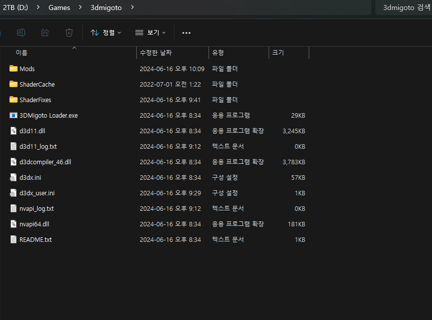 아래 파일 기준은 D:\Games\3dmigoto 에 스킨 로더를 설치했고