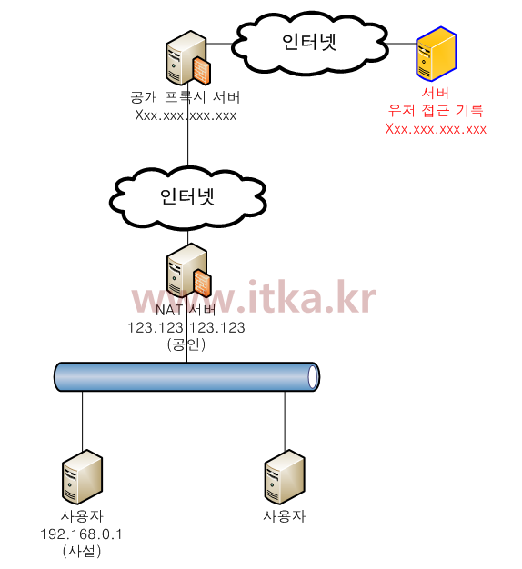 일반적으로 자신의 IP를 보호하는 방법으로 내부에서 많이 쓰이는 방법은 proxy 서버(적은의미로는 NAT)를 두는것을 의미한다.