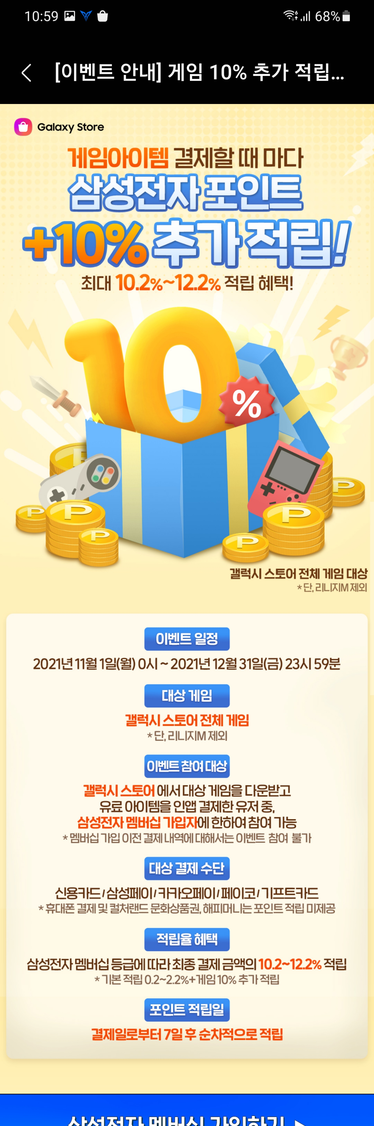 갤럭시 스토어 - 게임 아이템 10% 캐시백(21/12/31까지)
