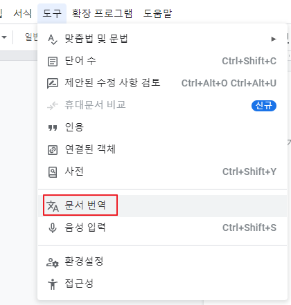 문서를 생성하면, 도구에서 문서 번역을 진행할 수 있다.