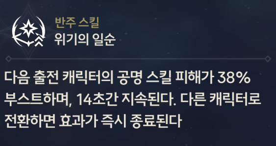 따라서 회절 캐릭터, 직접 피해를 입히는 캐릭터는 금희의 파티에서 조금은 꺼려지게 된다. 즉 최대한 짧게 피해를 입힐 있힐 수 있는 캐릭터가 금희에게 어울린다고 할 수 있다.